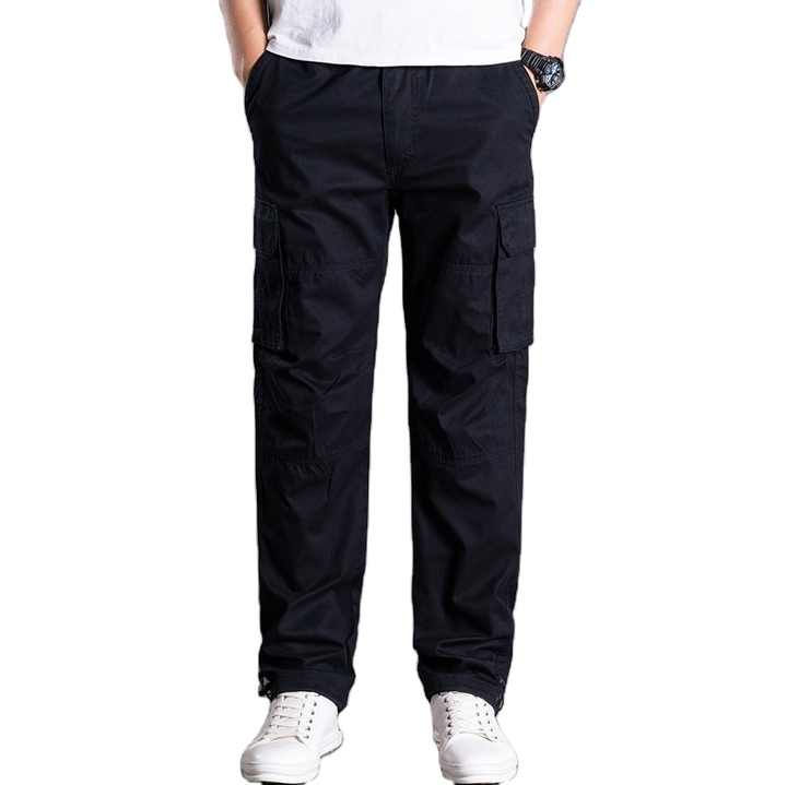 กางเกงคาร์โก้ของผู้ชายกางเกงคาร์โก้ขายาวผ้าคอตตอนเอวยางยืดทรงตรงสำหรับกลางแจ้งแนวยุทธวิธี