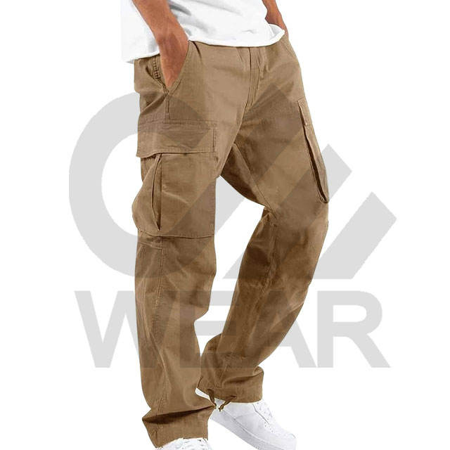 กางเกงคาร์โก้ของผู้ชายกางเกงสเวตเตอร์ผ้าคอตตอนทอลายทแยงระบายอากาศเข้ารูปลำลองทรงหลวมขนาดกลางเป็นมิตรกับสิ่งแวดล้อม