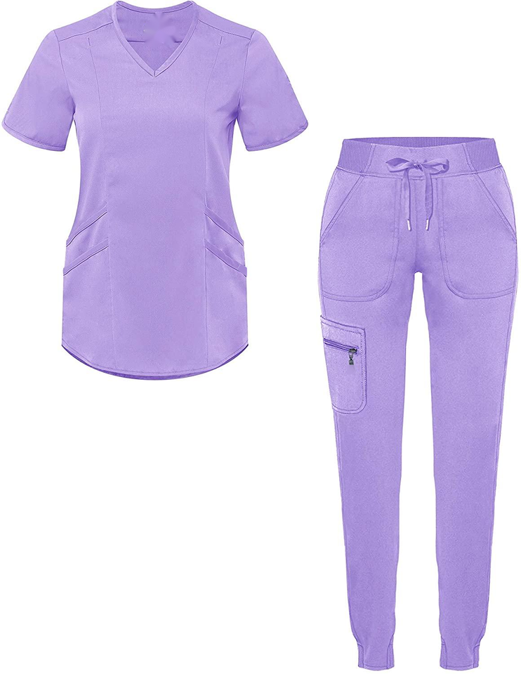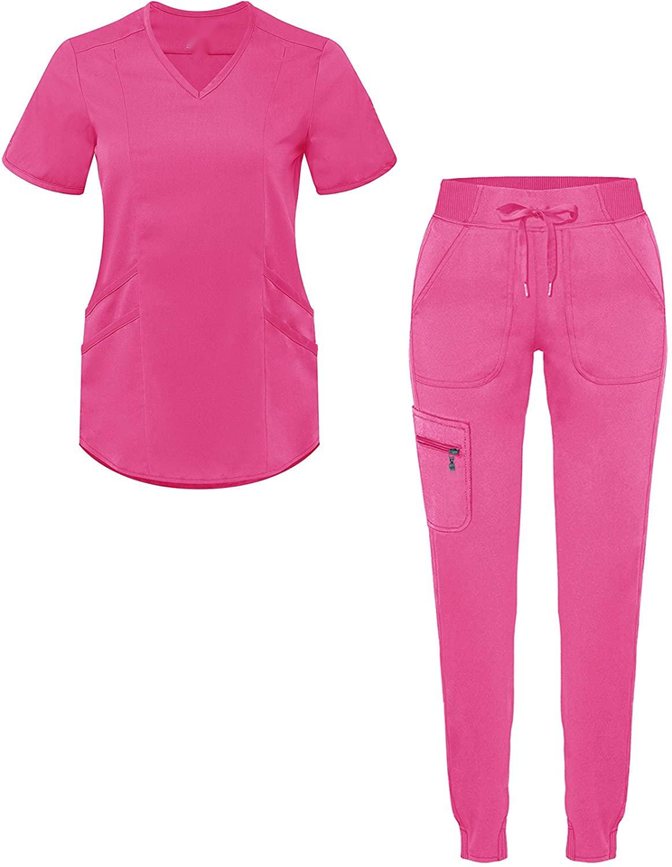 กางเกงสครับพยาบาลคอวีปรับแต่งได้สำหรับผู้ชายกางเกงเอวยางยืดแบบมีกระเป๋าเย็บทนทานสำหรับทั้งชายและหญิง