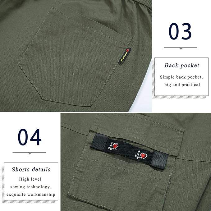 กางเกงขาสั้นคาร์โก้ผู้ชาย เอวยางยืด มีเชือกผูก เอวสม็อค ผ้าฝ้าย ใส่สบาย ไซส์ใหญ่พิเศษ ทรงหลวม เหมาะสำหรับใส่ทำงานในฤดูร้อน