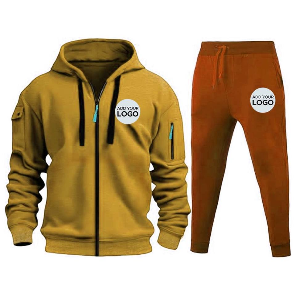 ชุดวอร์มคาร์โก้แขนยาวมีซิปมีหลายกระเป๋าสำหรับผู้ชายชุดออกกำลังกายทรงหลวม