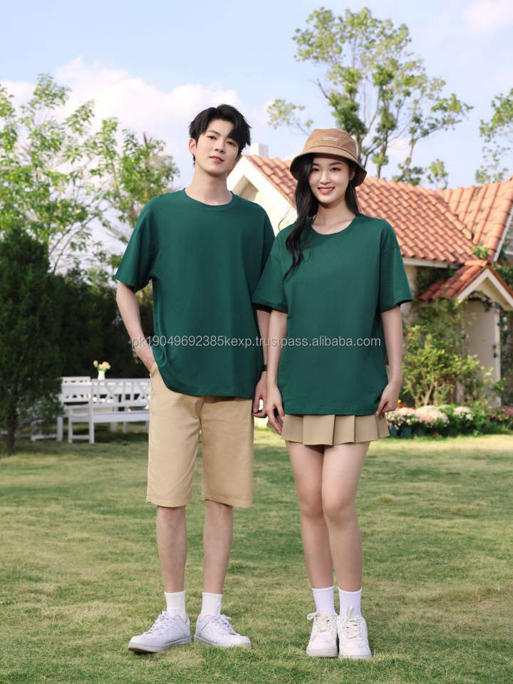 เสื้อยืดคอกลมสำหรับผู้ชายผ้าฝ้าย100% ลำลอง200กรัมผ้าถักสไตล์โอเวอร์ไซส์ดีไซน์เรียบง่าย