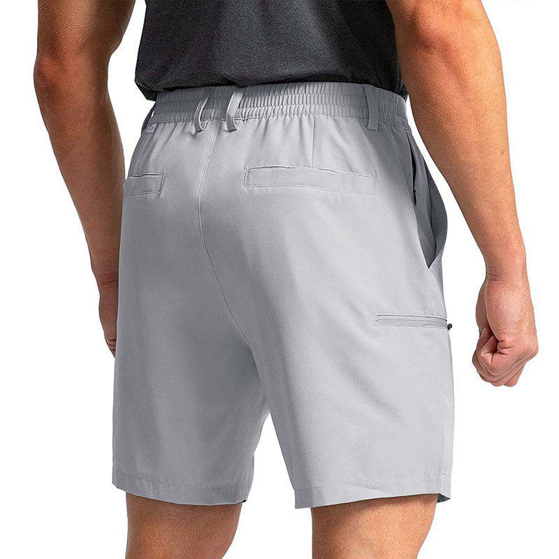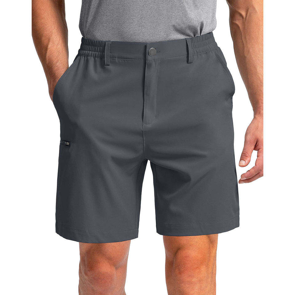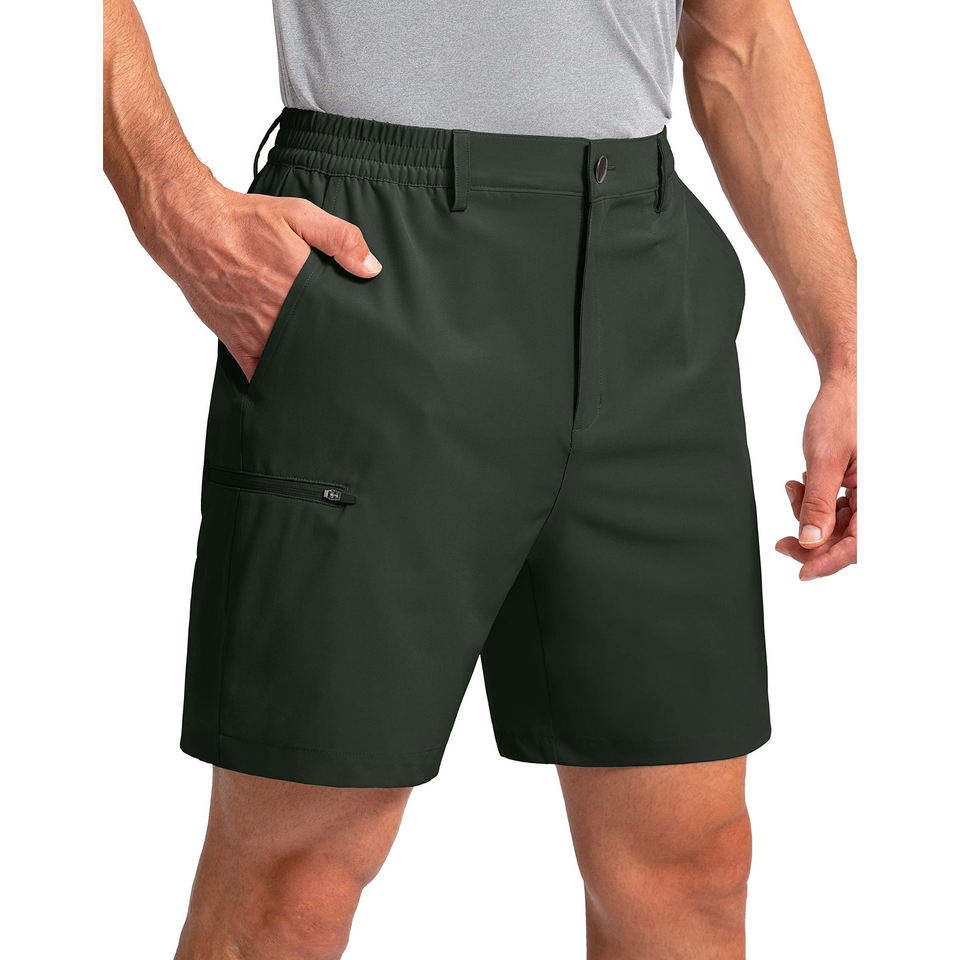 Men's Casual 100% Cotton Solid Cargo Shorts 6 Pockets 5 Inch Elastic Waist Breathable Half Pants Hiking Golf Woven Stretchable