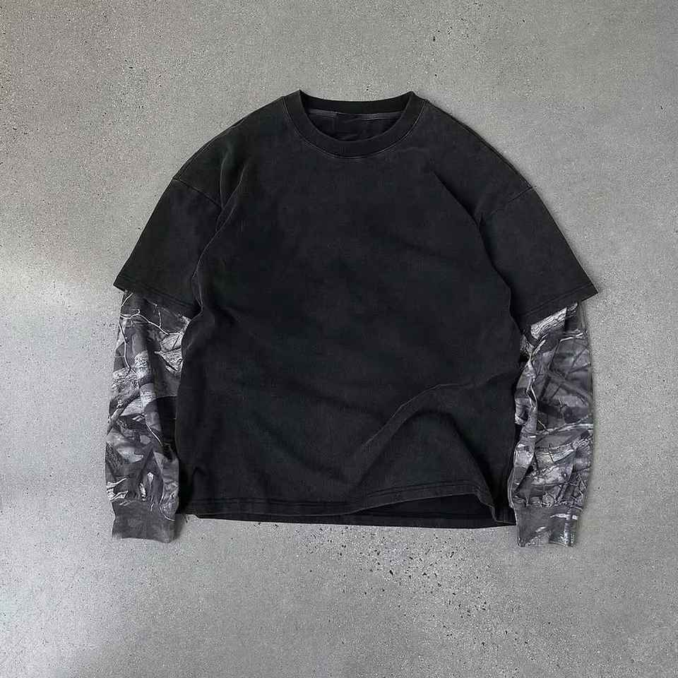เสื้อยืดลำลองผู้ชาย ผ้าฝ้าย 100% แห้งเร็ว ระบายอากาศดี ทรงโอเวอร์ไซส์ แขนยาว พิมพ์ลายโลโก้ด้านหน้าด้วยเทคนิคซิลค์สกรีน ผ้าถักใหม่