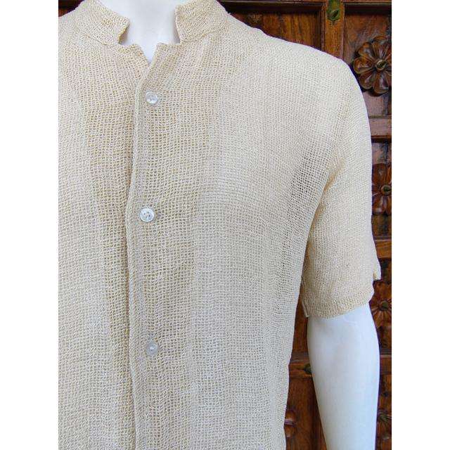 เสื้อเชิ้ตผู้ชายลำลอง ผ้าฝ้ายทอ 100% แขนสั้น คอจีน ลายพิมพ์บล็อก ดีไซน์กระดุม กระเป๋า ผลิตตามแบบ ODM ระบายอากาศได้ดี เป็นมิตรกับสิ่งแวดล้อม