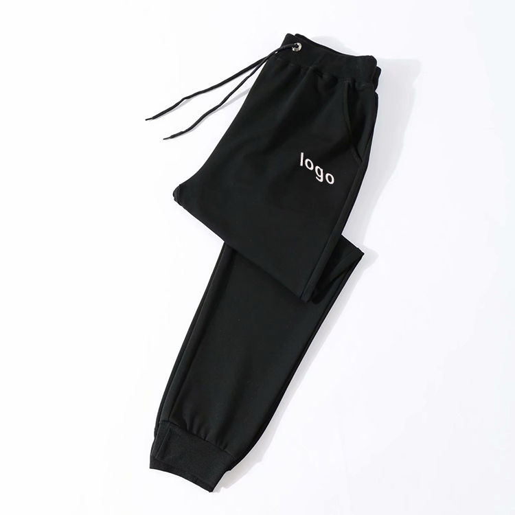 กางเกงจ็อกเกอร์ลำลอง2กระเป๋าสำหรับผู้ชายมาใหม่ออกแบบปักได้ตามต้องการผ้าฝ้ายสีดำล้วนผ้าโพลีเอสเตอร์