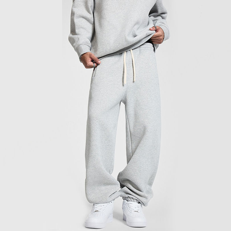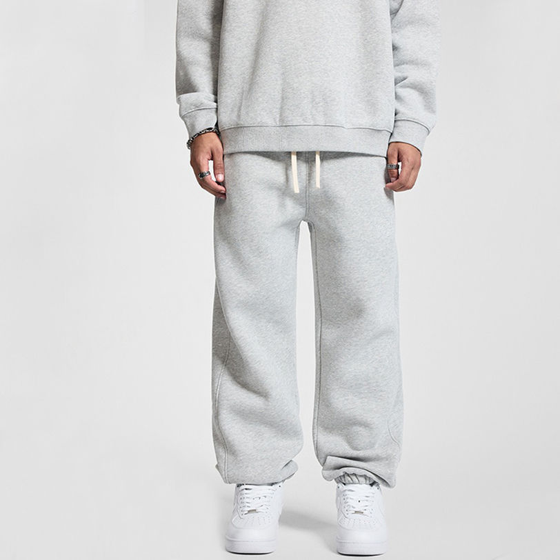 กางเกงลำลองผ้าฟลีซ350 GSM สำหรับผู้ชายกางเกงผ้าคอตตอนสไตล์อเมริกันกางเกงไม่มีซับในเอวทรงหลวม