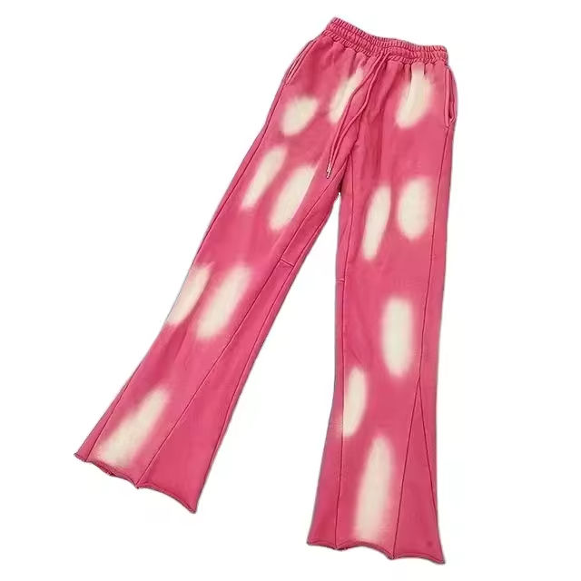 กางเกงวอร์มขาบานเอวสูงสำหรับผู้ชายกางเกงกีฬาขายาวผ้าลูกฟูกเย็บปะติดปะต่อกันแนวสตรีทพร้อมปิดเอวยางยืดลำลอง