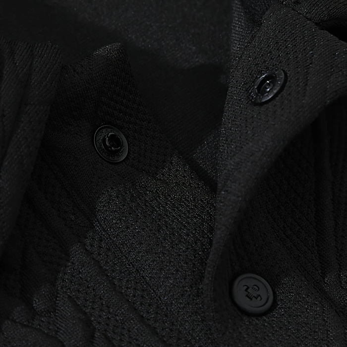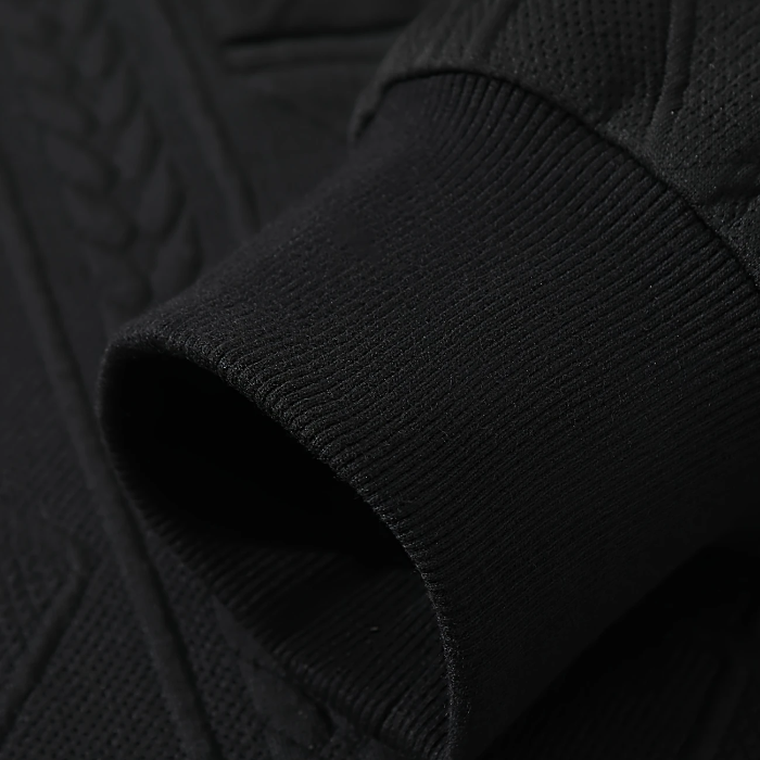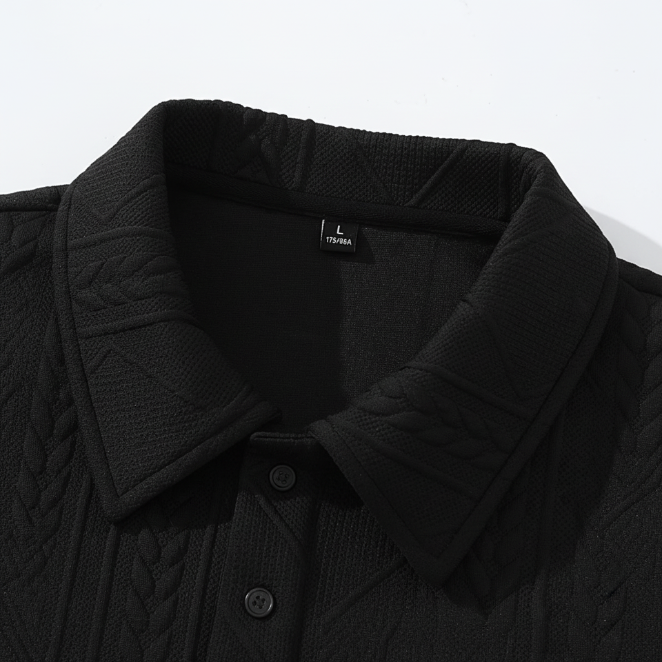 เสื้อแจ็คเก็ตผู้ชายลำลองสีดำ แขนยาว ผ้าแจ็คการ์ดหนา ปกเสื้อติดกระดุม ทรงโอเวอร์ไซส์ สองชั้น ลายสามมิติ สำหรับฤดูใบไม้ร่วง ผ้าฝ้าย 100%