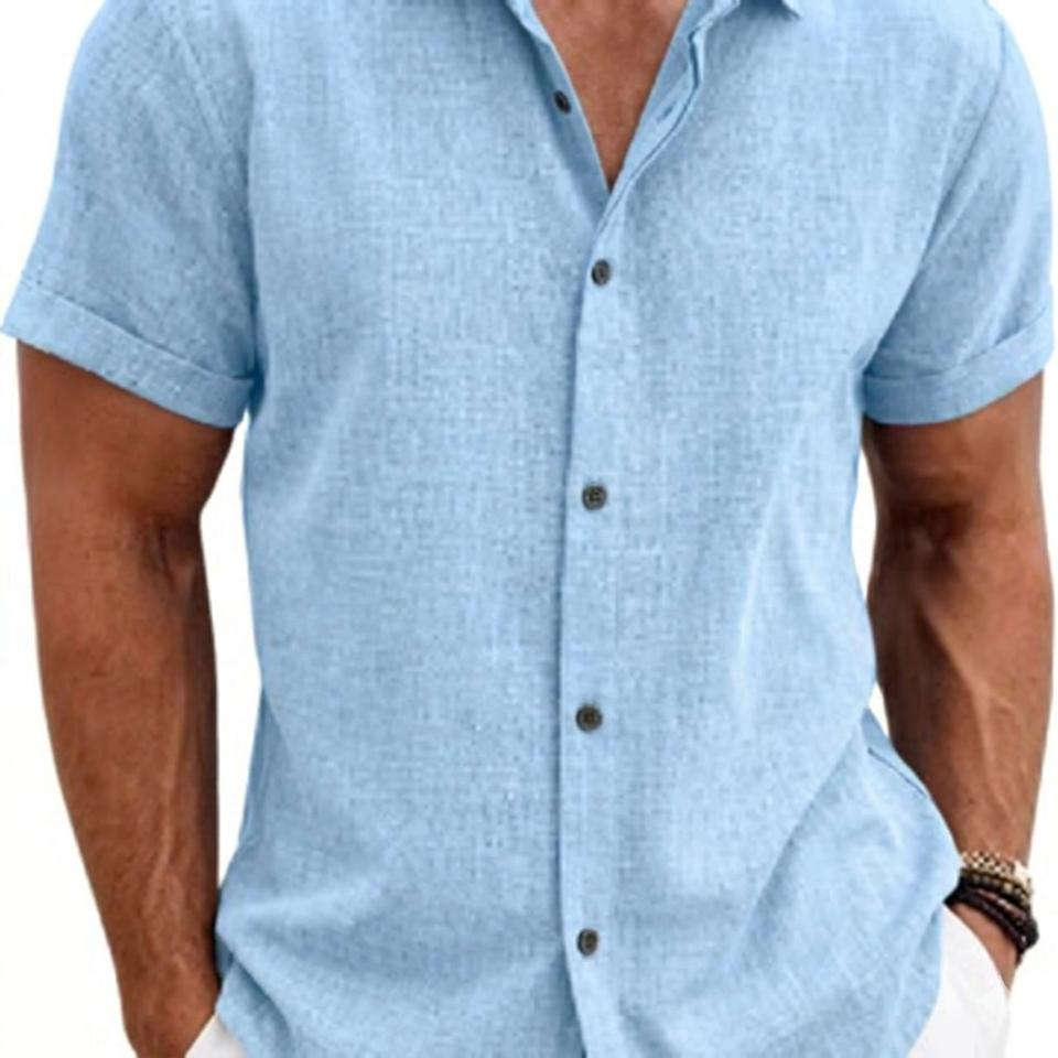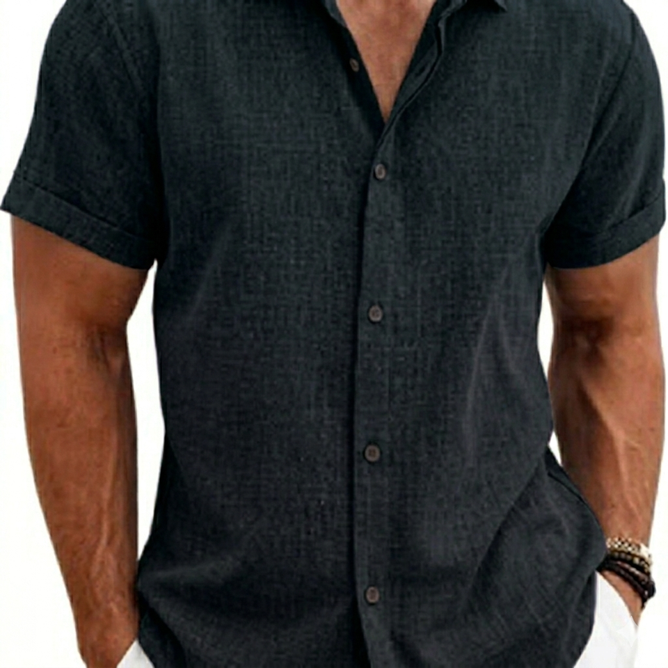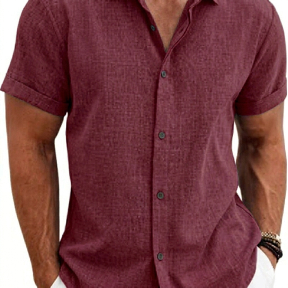 เสื้อเชิ้ตผู้ชายลำลอง แขนสั้น ผ้าป้องกันการเป็นขุย ย้อมเส้นด้าย สำหรับชายหาด ฤดูร้อน งานแต่งงาน วิธีการถักทอแบบนิตติ้ง