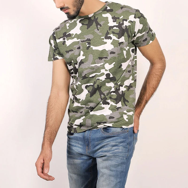 เสื้อยืดลำลองลายพรางสำหรับผู้ชาย ผ้าโพลีเอสเตอร์/เรยอน รับผลิตแบรนด์ส่วนตัว ปักโลโก้ได้ ไซส์ใหญ่ กันน้ำ กันลม ระบายอากาศได้ดี