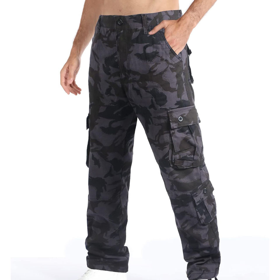 กางเกงคาร์โก้ลำลองสำหรับผู้ชายกางเกงผ้าคอตตอนผสมหลายกระเป๋าทรงหลวมแนวสตรีทแบบอเนกประสงค์ด้านหน้าเรียบขายส่ง