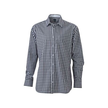 Men's Casual Checked Shirt 100% Cotton Western Style with Solid Inserts on Collar and Cuffs Fashionable Woven Checkered Design