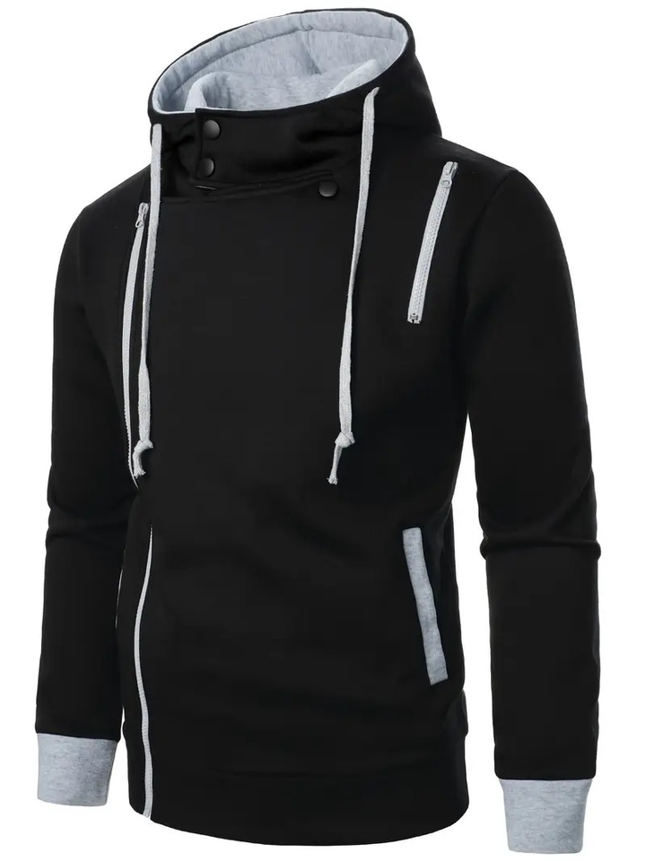 เสื้อฮู้ดซิปบล็อกสีลำลองของผู้ชายโพลีเอสเตอร์แขนยาวมีฮู้ดพร้อมกระเป๋าเหมาะสำหรับฤดูใบไม้ร่วง/ฤดูหนาวกีฬาและสันทนาการ