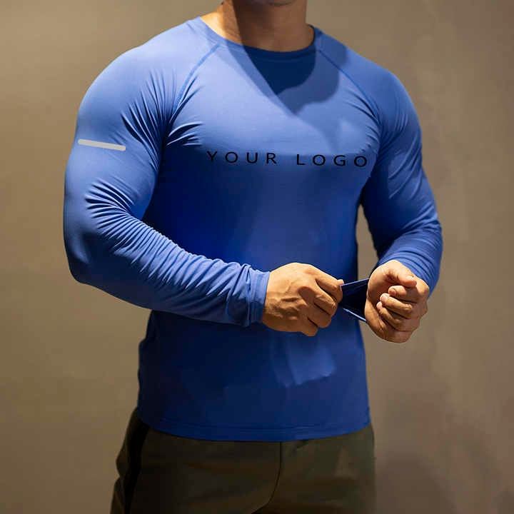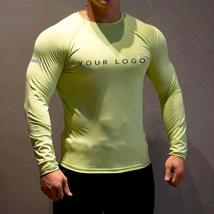 เสื้อยืดแขนยาวสำหรับผู้ชายแห้งแบบลำลองเสื้อออกกำลังกายเล่นยิมสำหรับวิ่งฟุตบอลเสื้อบาสเก็ตบอล