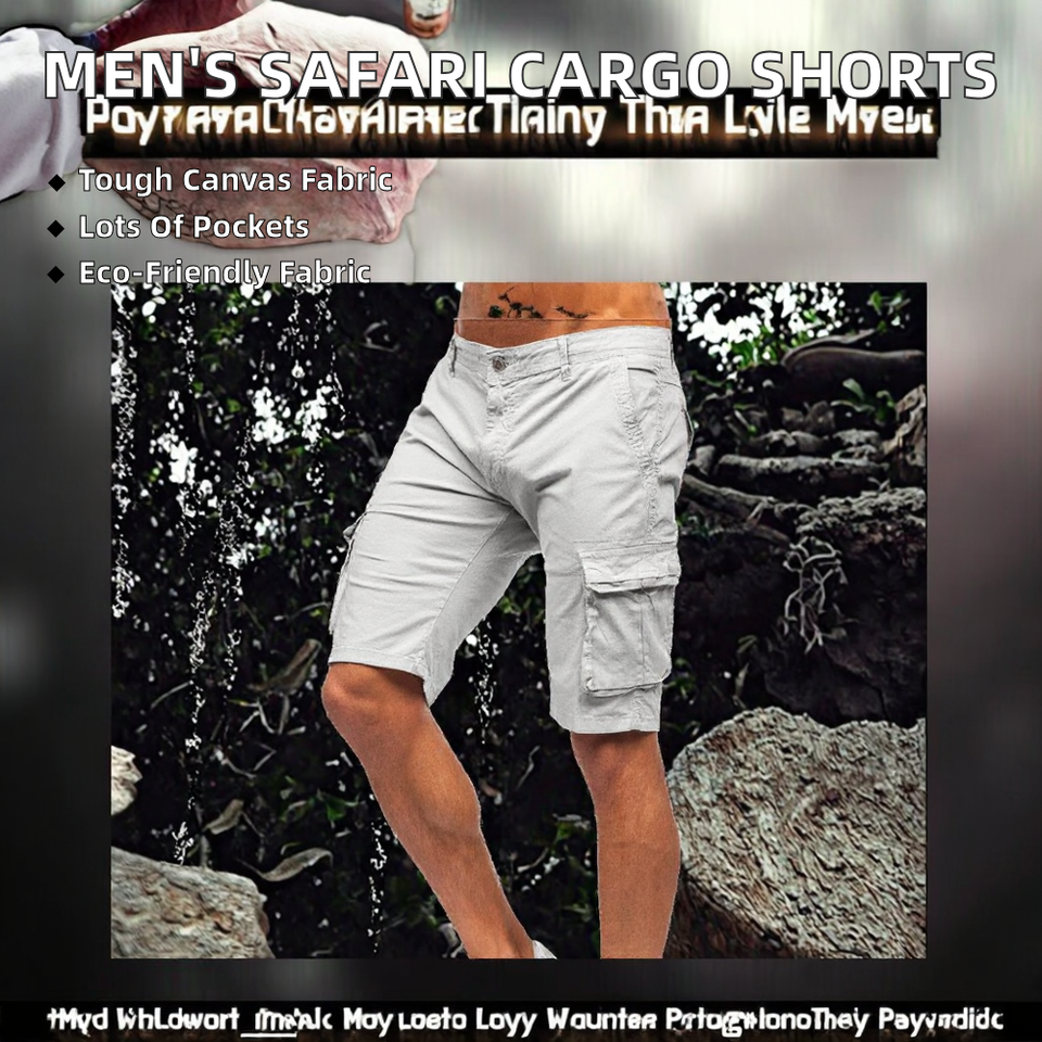 กางเกงขาสั้นผ้าแคนวาสลำลองสำหรับผู้ชาย ระบายอากาศได้ดี เอวกลาง ทรงซาฟารี มีกระเป๋าหลายช่อง เหมาะสำหรับเดินป่าและล่าสัตว์