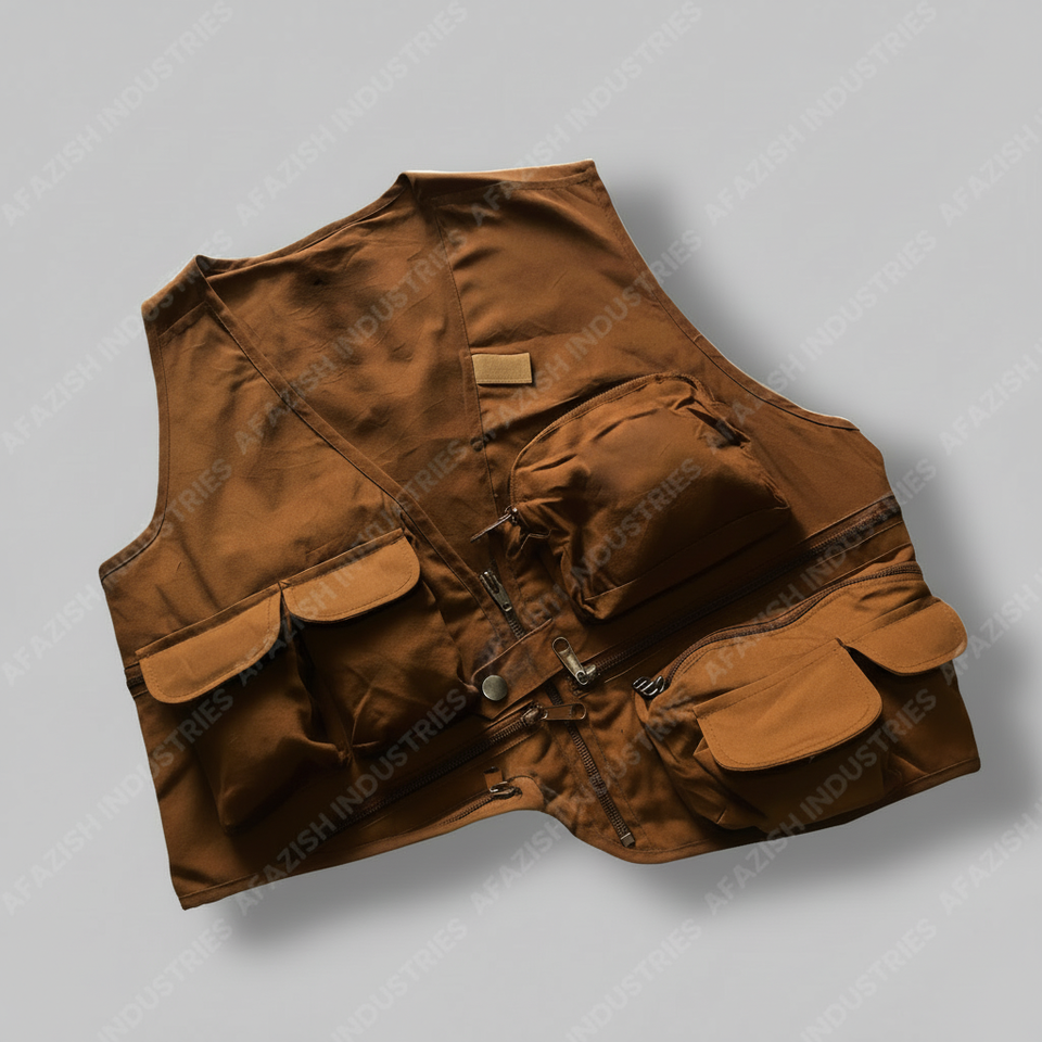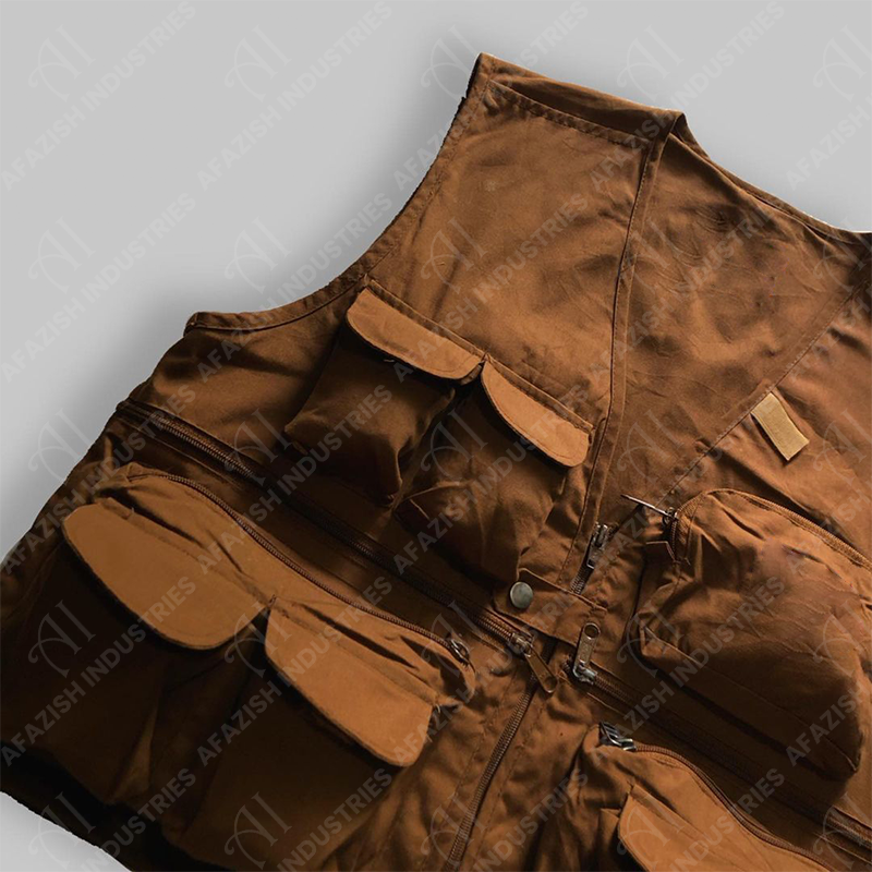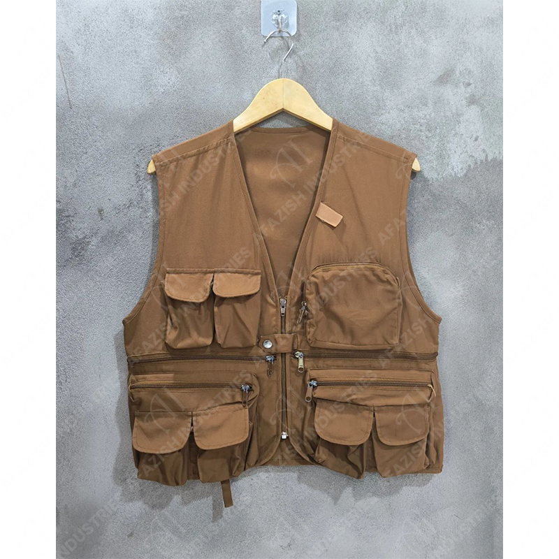 เสื้อกั๊กคาร์โก้ผ้าฝ้ายลำลองสำหรับผู้ชาย หลายกระเป๋า กันน้ำ กันลม เป็นมิตรกับสิ่งแวดล้อม ผ้าแคนวาส สำหรับฤดูใบไม้ผลิ ปรับแต่งได้ เหมาะสำหรับตกปลา
