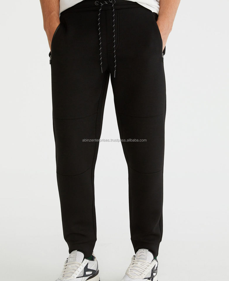 กางเกงวิ่งผ้าฟลีซผู้ชายผ้าคอตตอนแบบลำลองมีซิปรูดด้านหน้าน้ำหนักเบาปรับแต่งได้ไซส์ XL