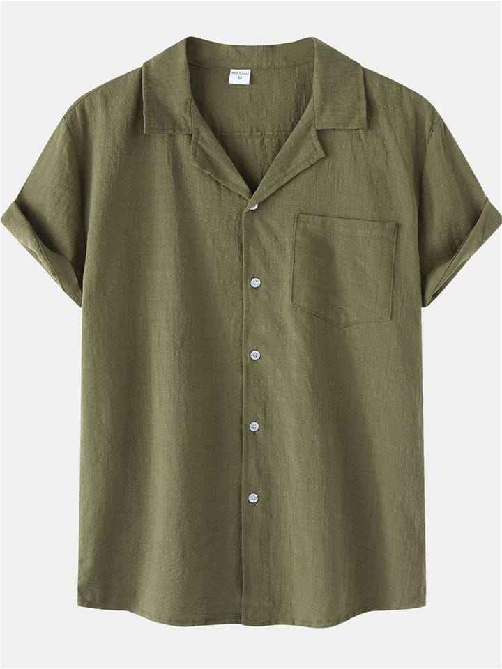 เสื้อเชิ้ตแขนสั้นทรงเฮนลีย์ผ้าฝ้ายออร์แกนิค 100% สำหรับผู้ชาย สวมใส่สบาย ระบายอากาศได้ดี ไม่ยับง่าย น้ำหนักเบา