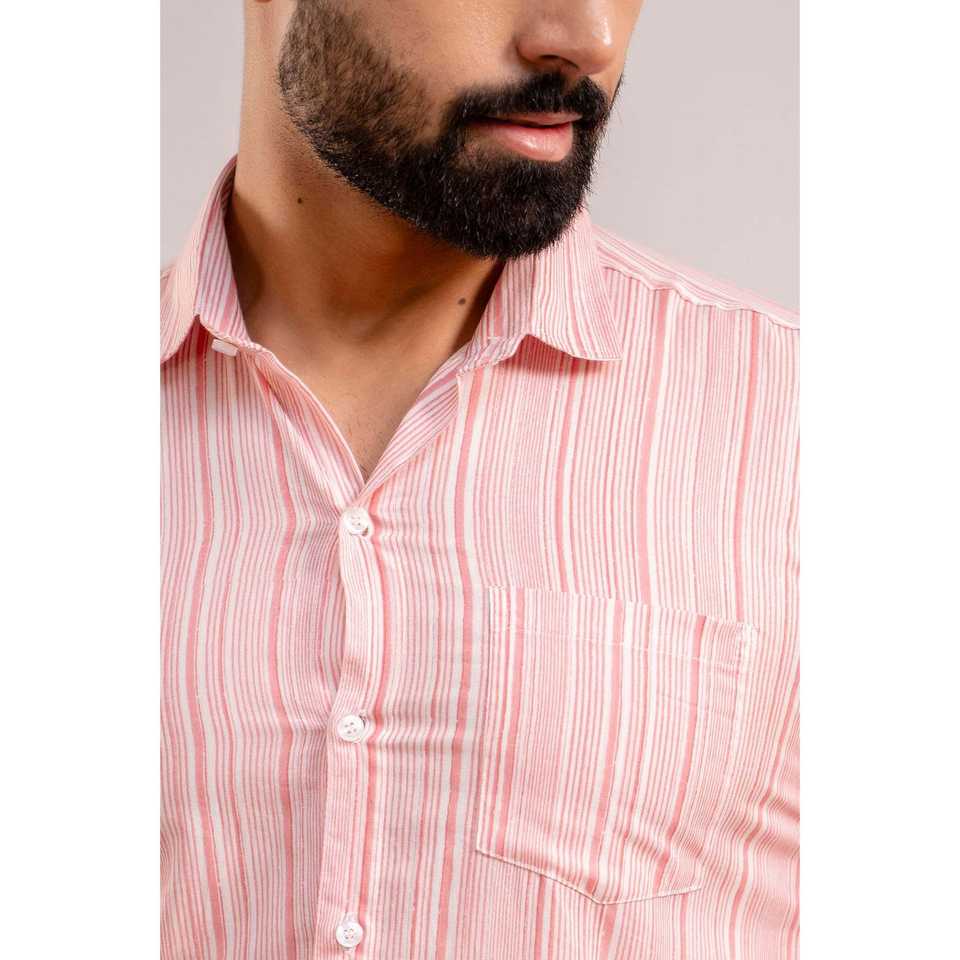เสื้อเชิ้ตลำลองคอตตอนสำหรับผู้ชาย, เสื้อเชิ้ตสีชมพูลายทางคอเสื้อมีกระดุมป้องกันรอยยับแขนยาว6XL ไซส์สำหรับฤดูร้อนฤดูใบไม้ร่วง