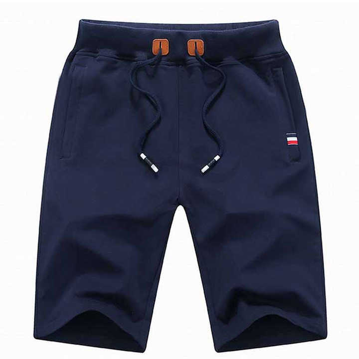 กางเกงขาสั้นผ้าคอตตอนสำหรับผู้ชาย, สำหรับใส่วิ่งน้ำหนักเบาสวมใส่สบายมีเชือกผูกเอวสีล้วนผ้าย้อมสีพื้น