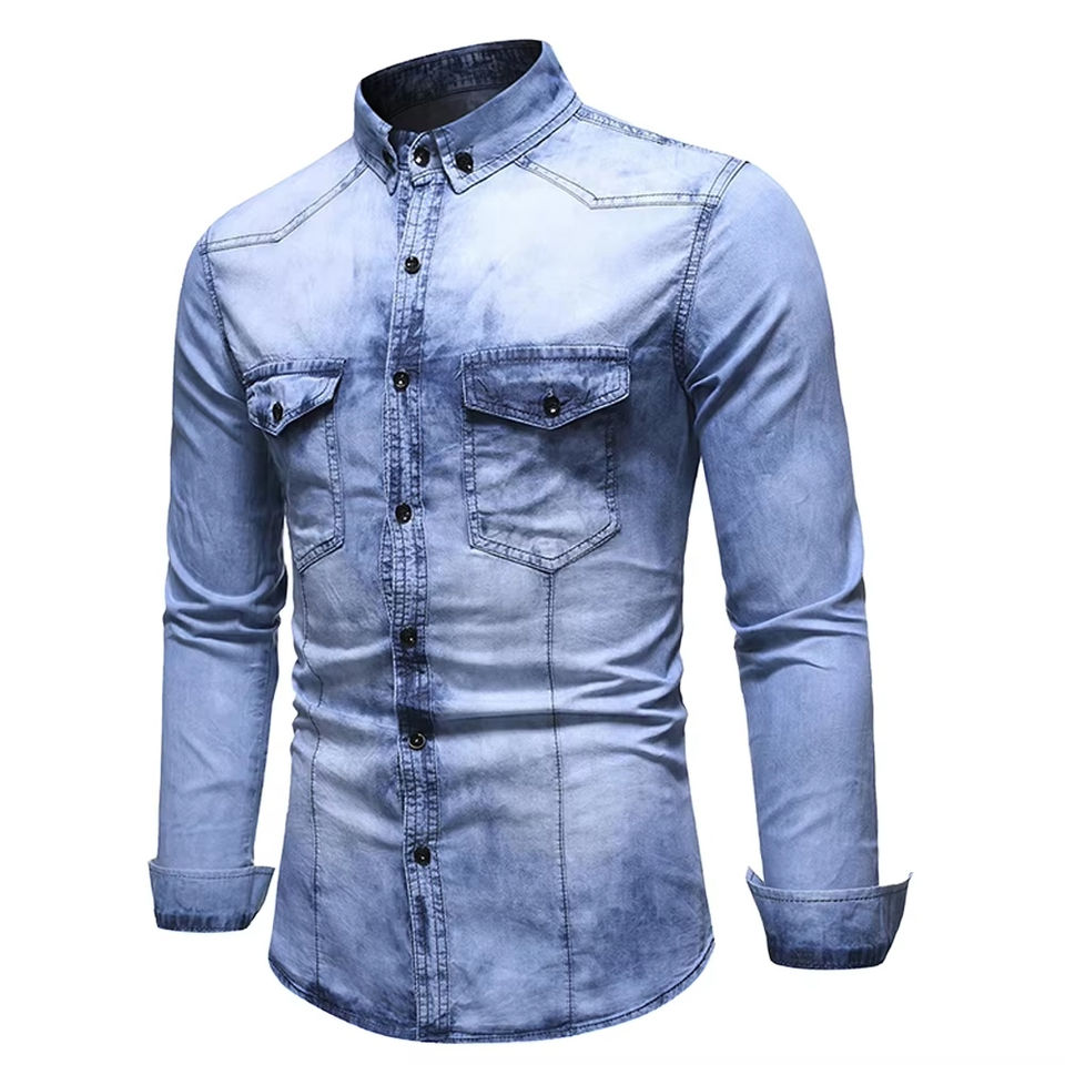 เสื้อเชิ้ตยีนส์ผ้าฝ้ายทวิลลำลองสำหรับผู้ชาย แขนยาว สวมใส่สบาย สินค้ามาใหม่รับฤดูใบไม้ผลิ