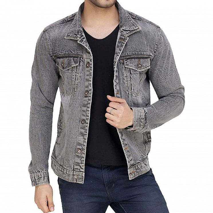 เสื้อแจ็กเก็ตผ้ายีนส์ผู้ชายใส่ได้ทุกวันมีกระดุมฉีกแขนยาวมีกระเป๋าแฟชั่นสวมใส่สบายทันสมัย