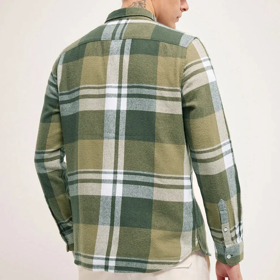 เสื้อเชิ้ตผู้ชายลายสก็อตสีเข้ม แขนยาว ผ้าฝ้าย 100% ระบายอากาศได้ดี ไม่เป็นขุย เหมาะสำหรับฤดูใบไม้ร่วง