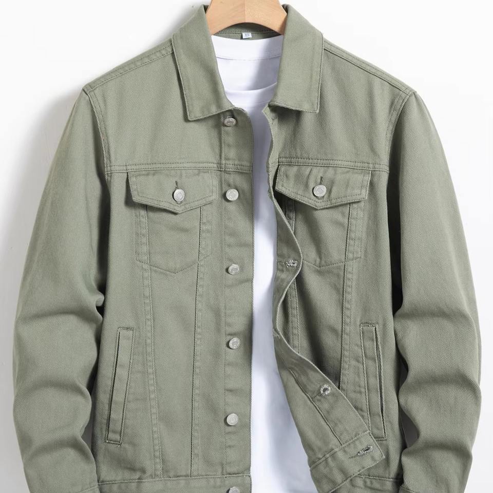 แจ็กเก็ตยีนส์แบบลำลองสำหรับผู้ชายเสื้อแจ็กเก็ตผ้ายีนส์แขนยาวสำหรับฤดูใบไม้ร่วงเป็นมิตรกับสิ่งแวดล้อมระบายอากาศได้ดี