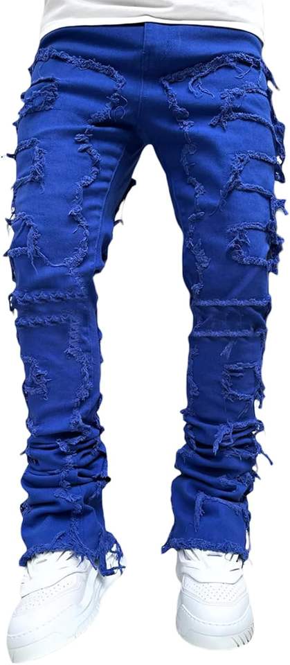 กางเกงวิ่งขาตรงสไตล์ฮิปฮอปของผู้ชายผ้าผ้ายืดเข้ารูปขาดลำลองน้ำหนักเบา