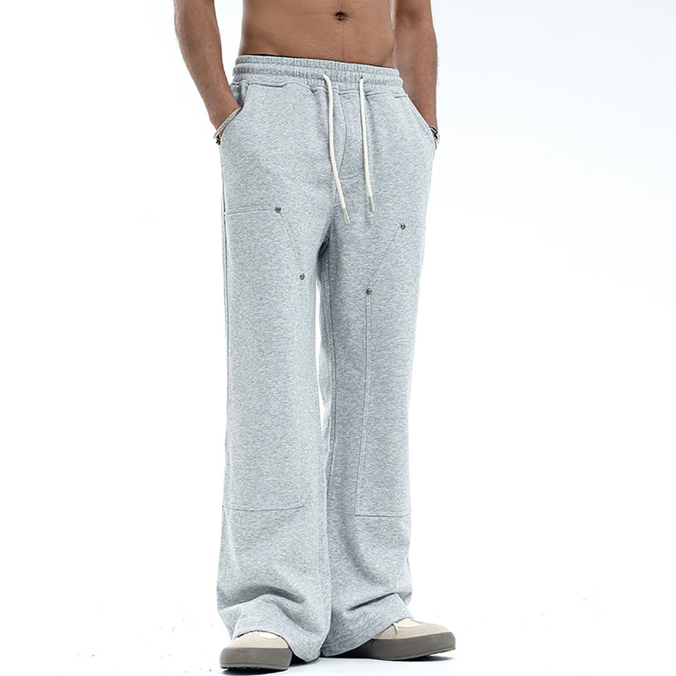 กางเกงวอร์มขาบานทรงตรงสไตล์สตรีทแวร์ลำลองสำหรับผู้ชาย ผ้าโพลีเอสเตอร์/คอตตอน เฟรนช์เทอร์รี่ ป้องกันการเป็นขุย