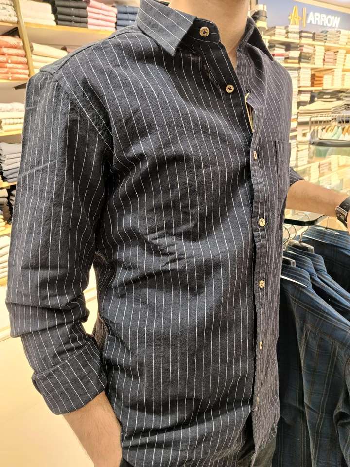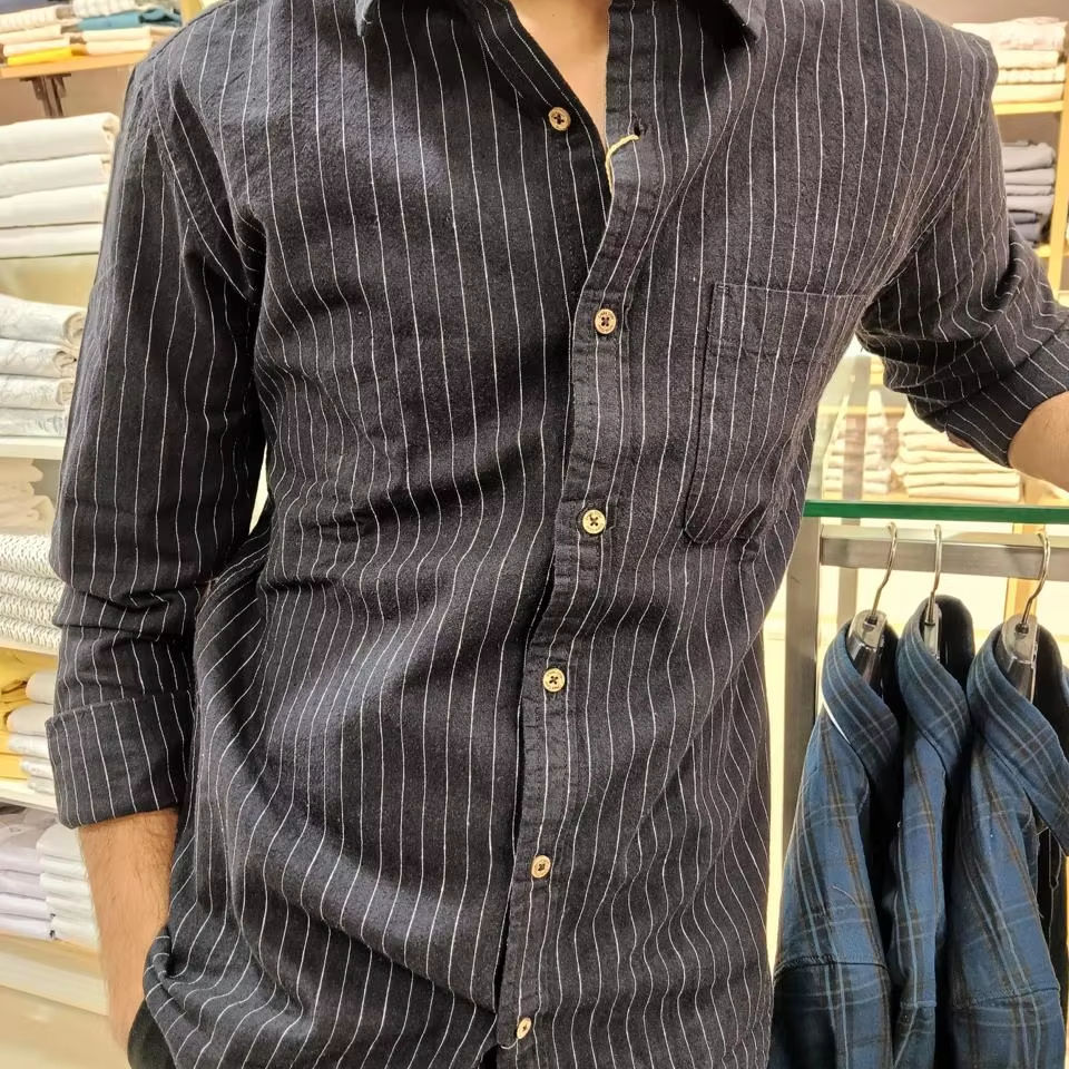 เสื้อเบลาส์แขนยาวสำหรับผู้ชาย, เสื้อ100% ผ้าฝ้ายระบายอากาศและพิมพ์ลายทางแขนยาวสำหรับฤดูร้อน