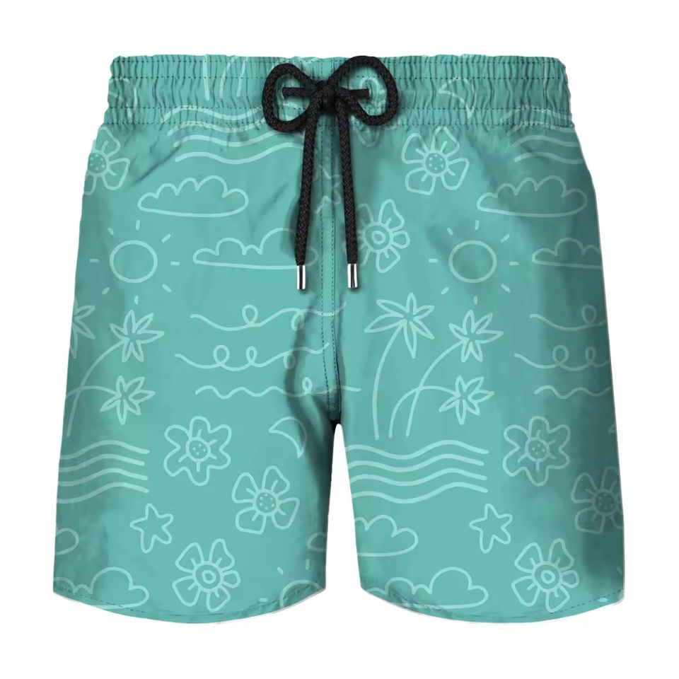 กางเกงขาสั้นชายหาดลายทางแฟชั่นลำลองสำหรับผู้ชาย คุณภาพดี ผ้ายืดสแปนเด็กซ์ ไซส์ XS พิมพ์ลายแบบซับลิเมชั่น ซับในตาข่าย มีกระเป๋า