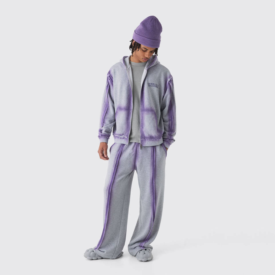 ชุดวอร์มลำลองผู้ชายผ้าฟลีซลายฟอกสี ดีไซน์ใหม่ เสื้อฮู้ดซิป ชุดจ็อกเกอร์ ใส่สบายสำหรับการวิ่งจ๊อกกิ้ง