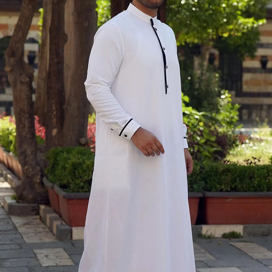 Thobe เสื้อคอปกสูงแบบลำลองของผู้ชายมีกระเป๋ารอบคอบแขนยาวระบายอากาศออกแบบในแฟชั่น