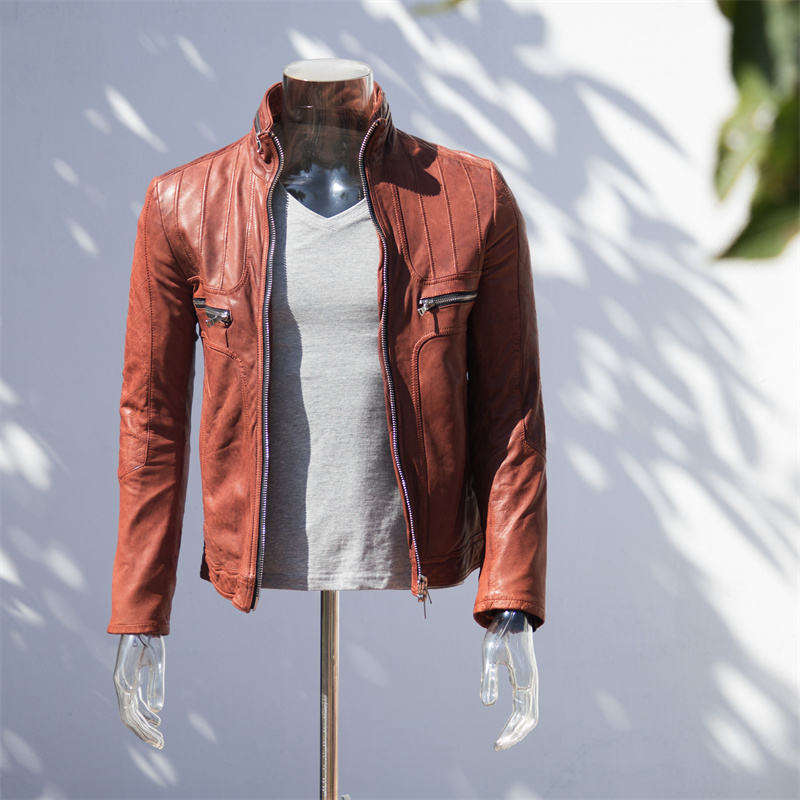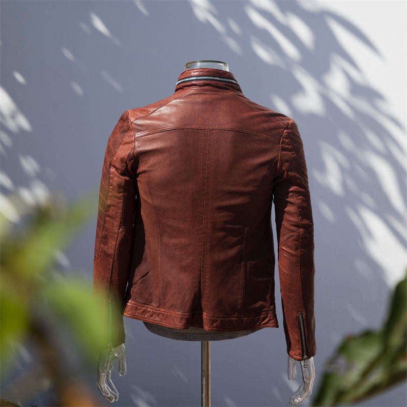 แจ็กเก็ตหนังแท้แบบลำลองสำหรับผู้ชายแจ็คเก็ตหนังนักบินหนังแกะออกแบบโลโก้ได้ตามต้องการ