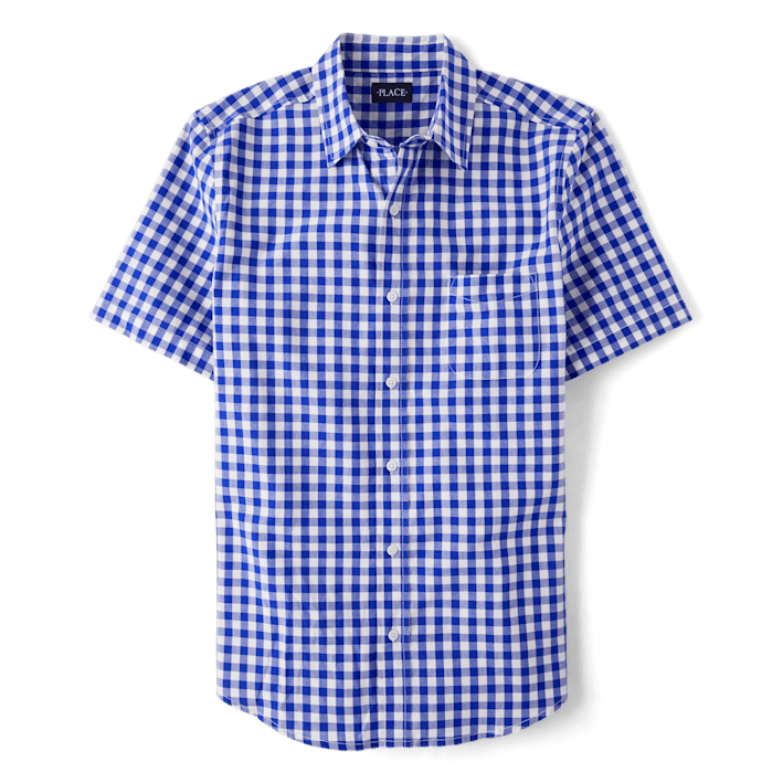 เสื้อเชิ้ตผ้าฝ้ายลายตาหมากรุกแบบลำลองสำหรับเด็ก, เสื้อเชิ้ตกระดุมแถวเดียวเนื้อผ้าอ็อกซ์ฟอร์ดมีกระดุมสำหรับผู้ชาย3XL สีน้ำเงินไซส์ใหม่