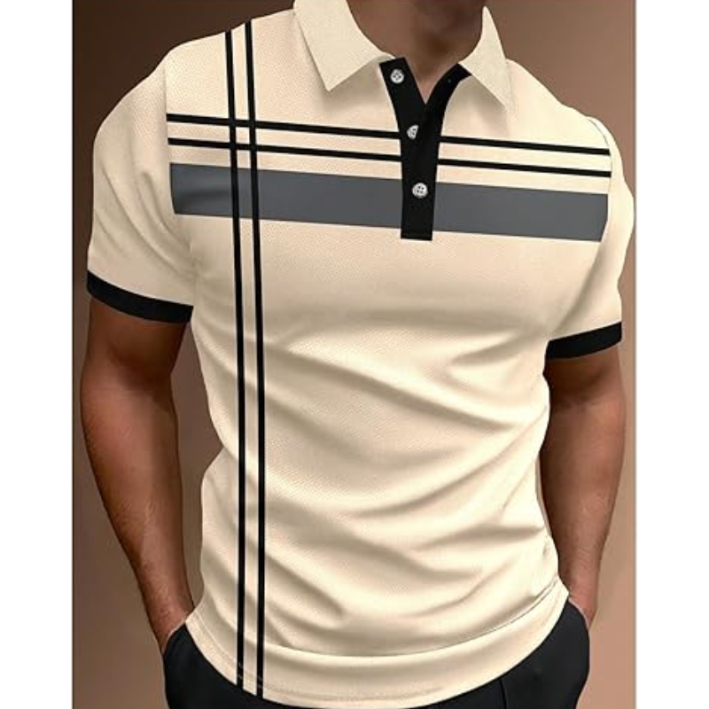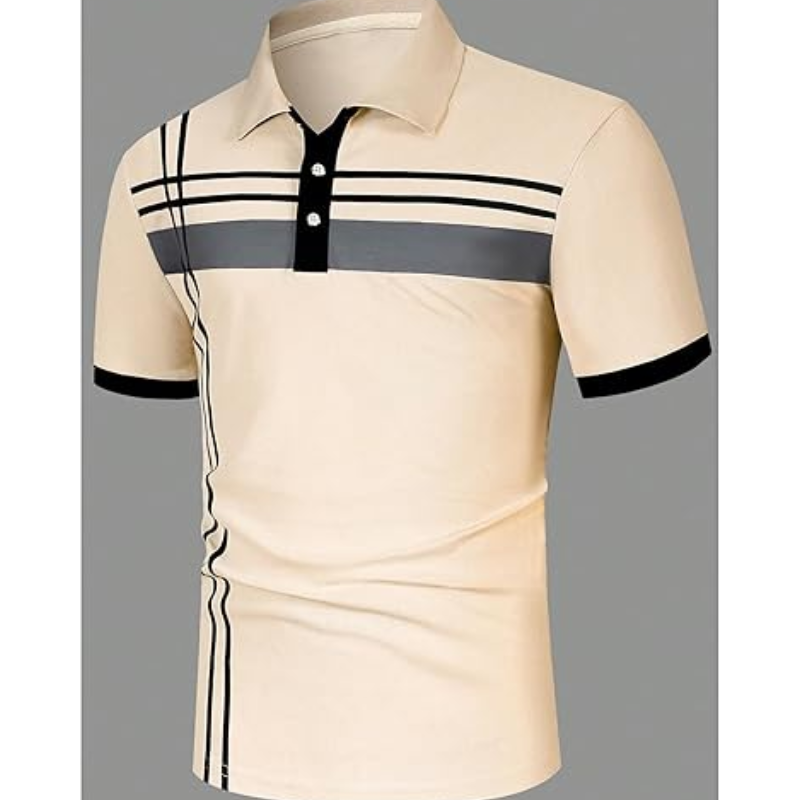 เสื้อกอล์ฟลำลองผู้ชาย แขนสั้น ติดกระดุม ลายทาง คอปก เสื้อยืดทำงานฤดูร้อน