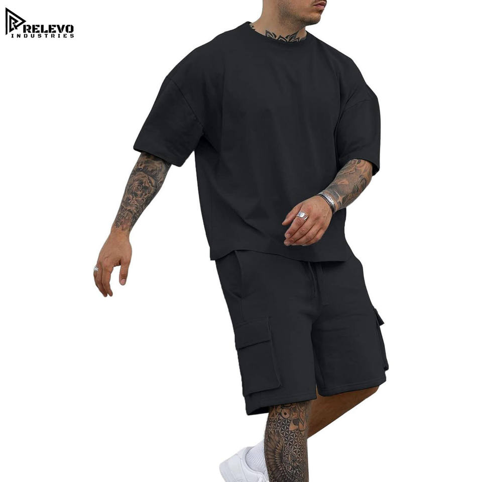 ชุดเซ็ตเสื้อยืดแขนสั้นและกางเกงขาสั้นลำลองสำหรับผู้ชาย สีพื้น ผ้าฝ้าย 100% แห้งเร็ว ระบายอากาศได้ดี เหมาะสำหรับออกกำลังกายในฤดูร้อน