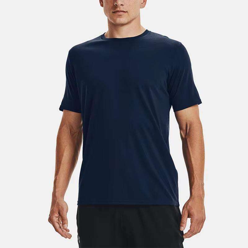เสื้อยืดแขนสั้นลำลองสำหรับผู้ชาย ผ้าทอเนื้อยืดสูง 220 กรัม ย้อมสีพื้น ดีไซน์โลโก้ด้านหน้า ลายเรียบ