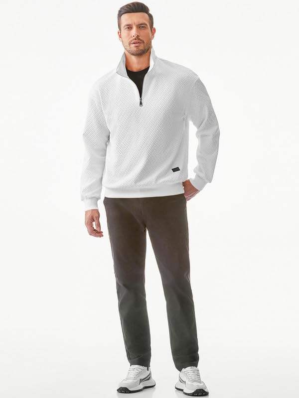 เสื้อสเวตเตอร์วาฟเฟิลแขนยาวมีฮู้ดซิปครึ่งแขนแบบลำลองของผู้ชายชุดผ้าฝ้ายเนื้อแน่น