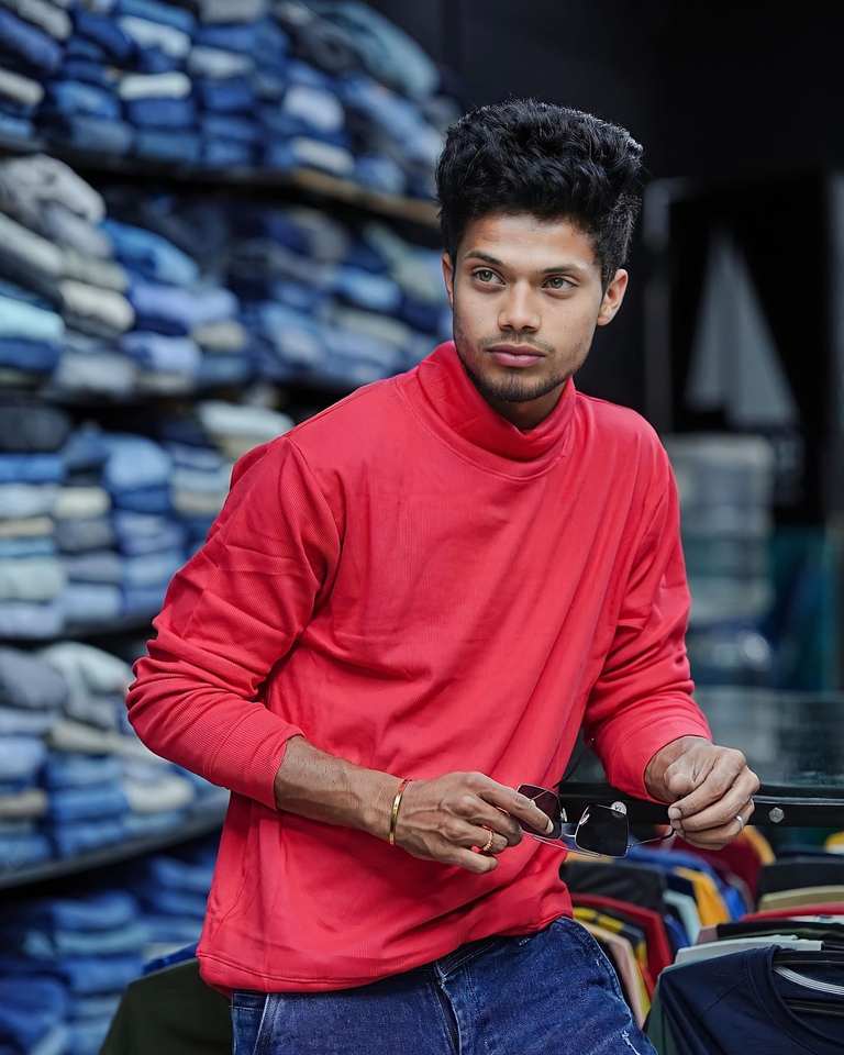 Men's Casual Hi-Neck 100% Cotton T-Shirt Solid Pattern Canvas with Customizable Blank Design