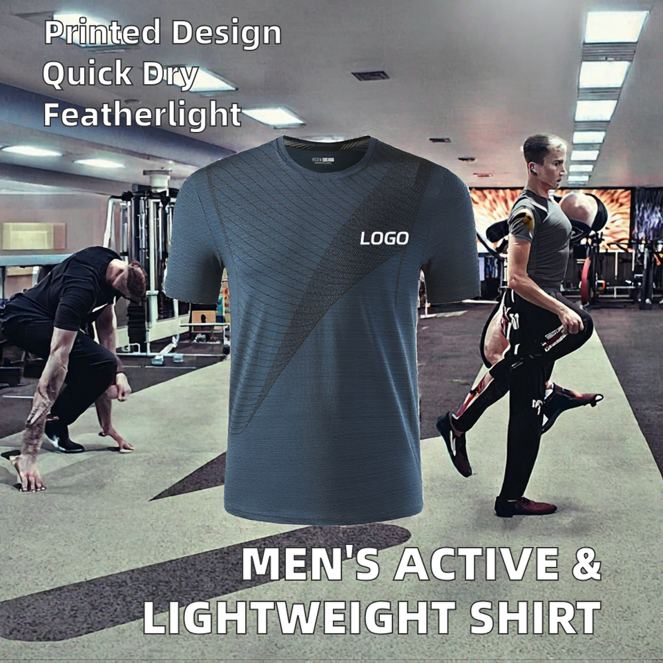 เสื้อยืดวิ่งออกกำลังกายแบบแอคทีฟอัดอากาศแห้งเร็วผ้าถักลำลองสำหรับผู้ชายสำหรับยิมฟิตเนส