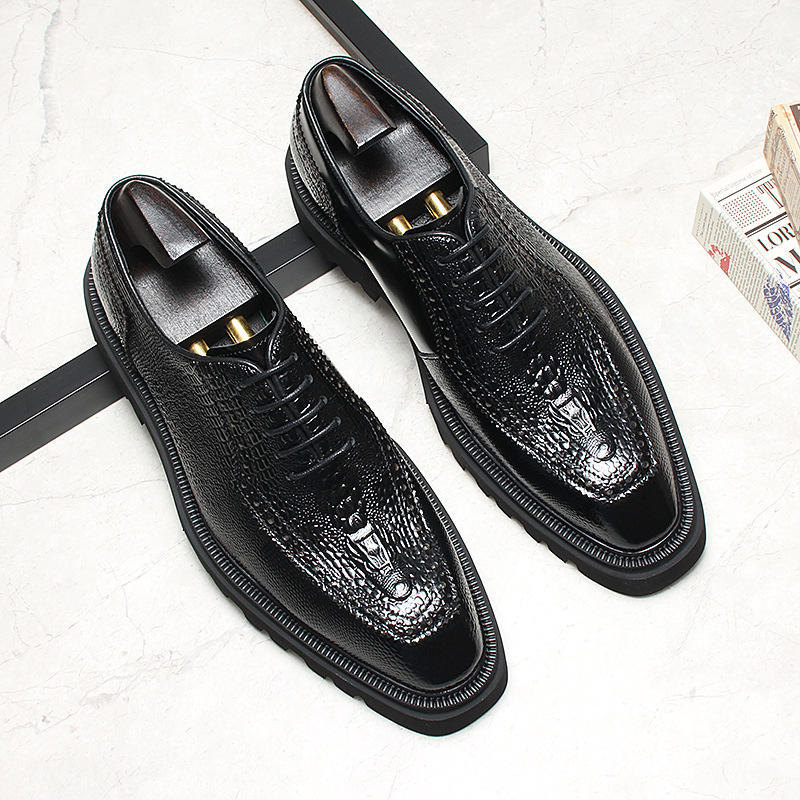 รองเท้าหนังลำลองผู้ชาย รองเท้าแต่งงาน ทันสมัย ปิดนิ้วเท้า กันน้ำ ระบายอากาศได้ดี แบบมันเงา สไตล์อังกฤษ สปอร์ต ผูกเชือก ฤดูใบไม้ร่วง ฤดูหนาว