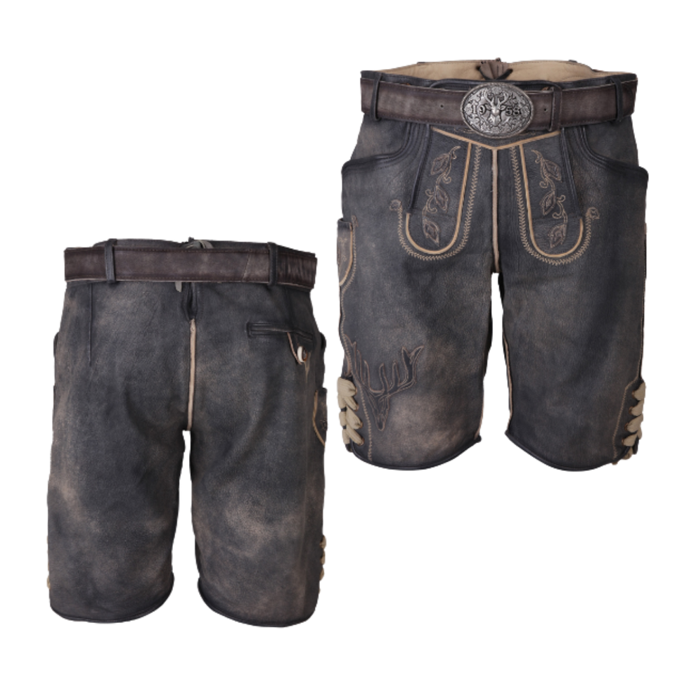 กางเกงขาสั้นหนังลำลองสำหรับผู้ชาย สไตล์บาวาเรียน เยอรมัน เหมาะสำหรับเทศกาลอ็อกโทเบอร์เฟสต์ พร้อมสายเอี๊ยมเข้าชุด เป็นมิตรกับสิ่งแวดล้อม ป้องกันรอยยับ