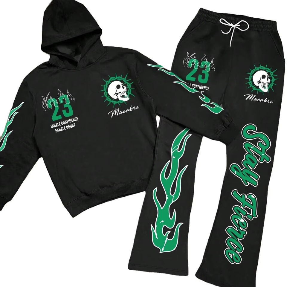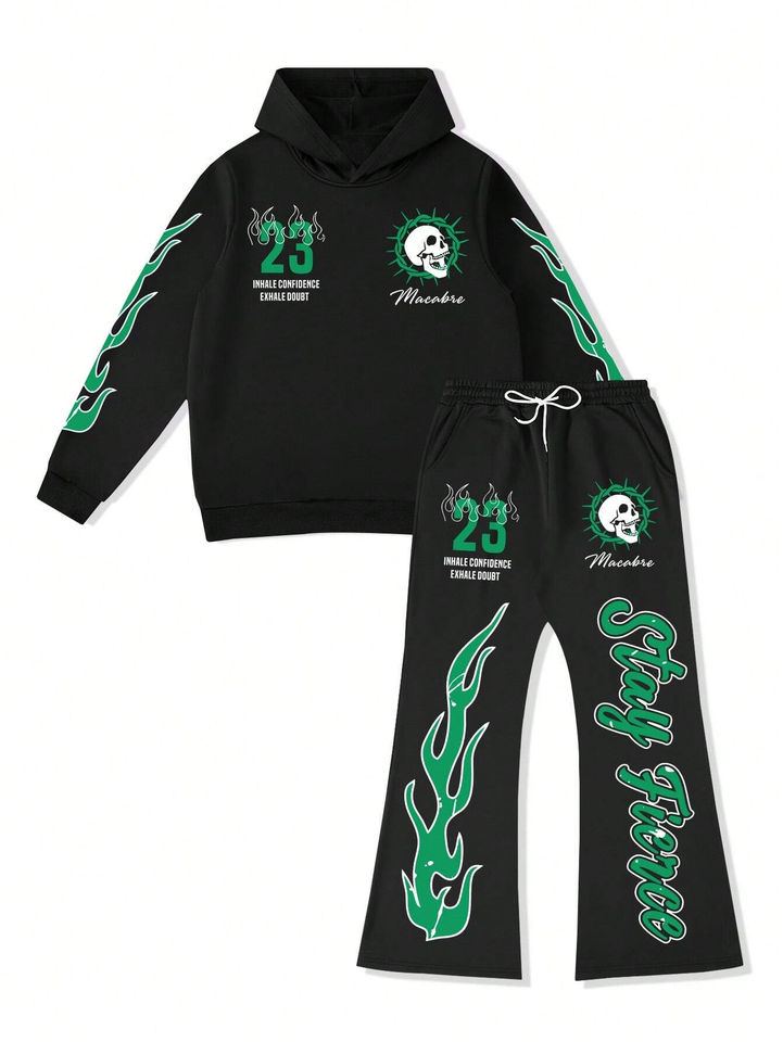ชุดเสื้อฮู้ดและกางเกงลำลองพิมพ์ลายตัวอักษรสำหรับผู้ชาย, ชุด 2 ชิ้นสำหรับผู้ชาย, ชุดกราฟิก 2 ชิ้นสำหรับผู้ชาย, ชุดเสื้อฮู้ด