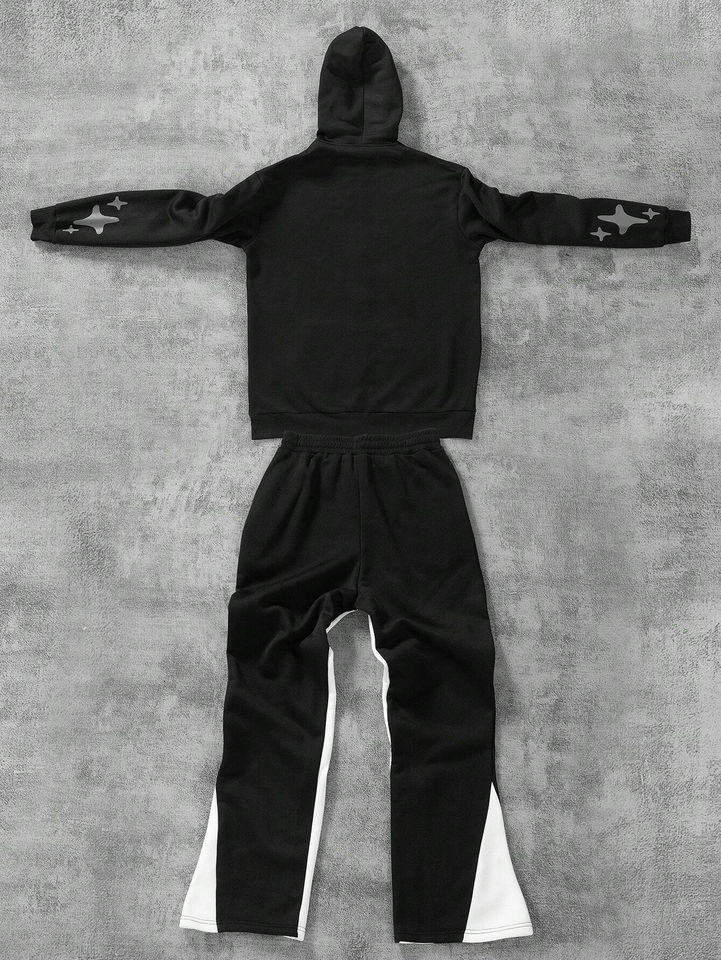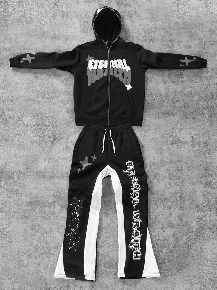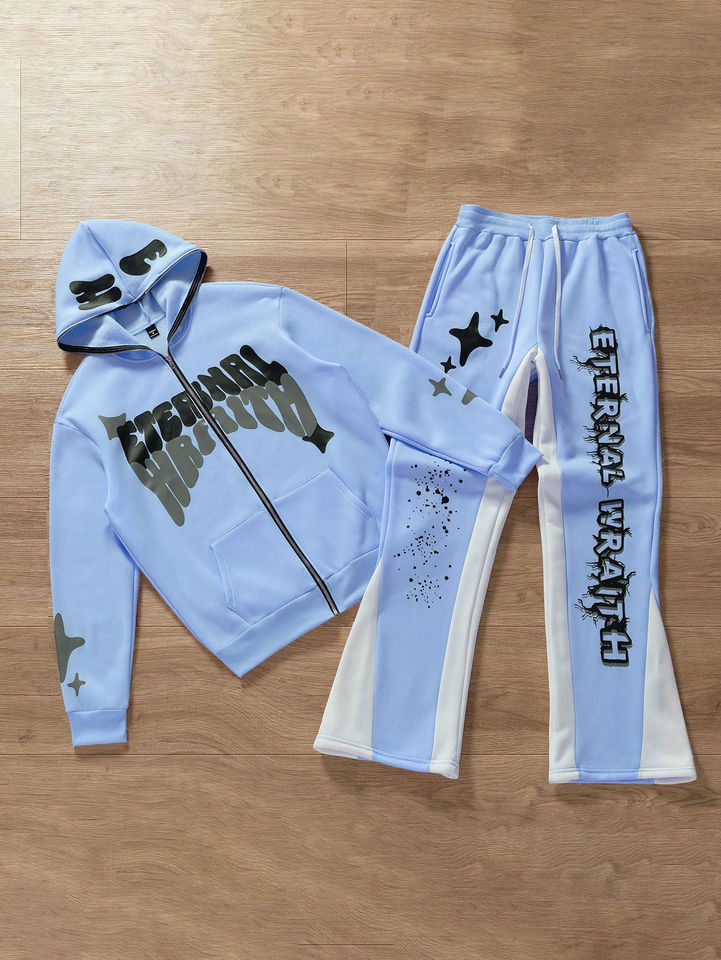 ชุดเสื้อฮู้ดและกางเกงวอร์มผ้าฟลีซพิมพ์ลายตัวอักษรสำหรับผู้ชาย ชุดลำลองสำหรับฤดูใบไม้ร่วงและฤดูหนาว ชุดวอร์มผู้ชาย