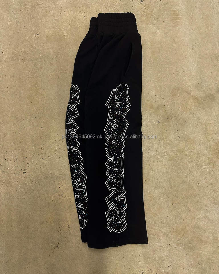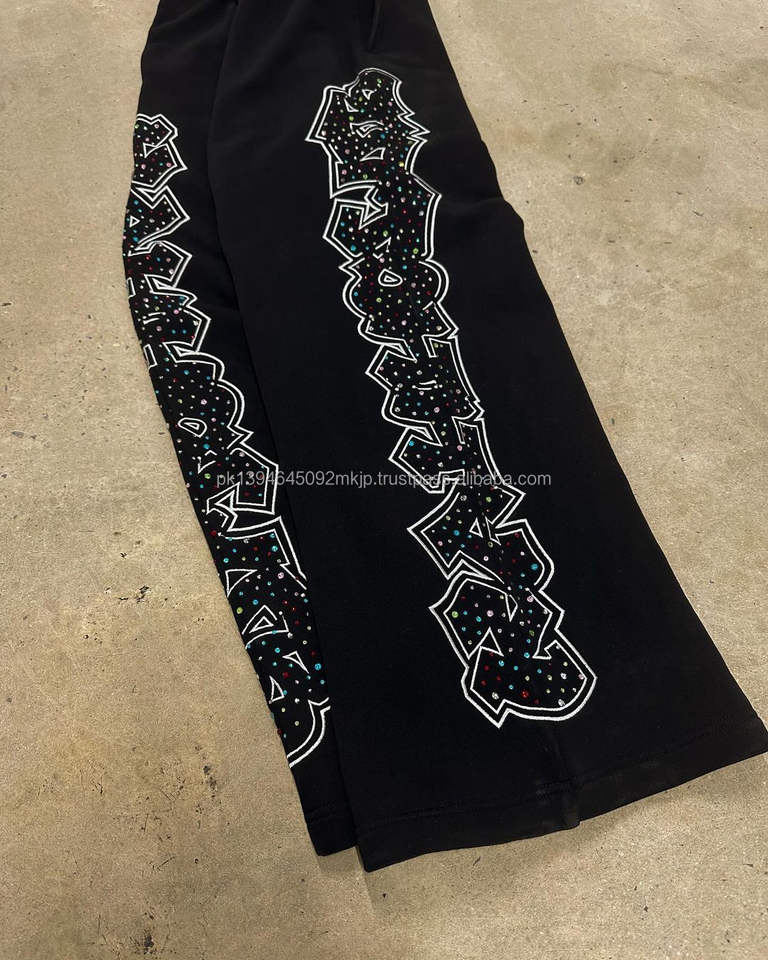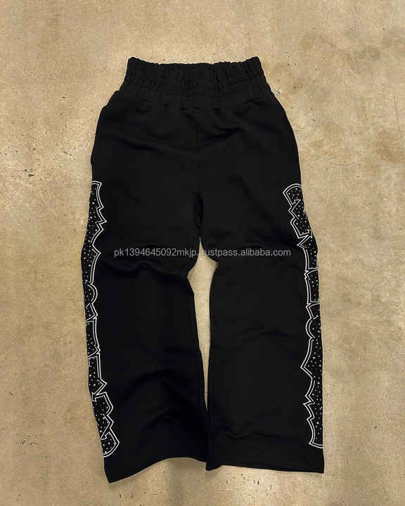 กางเกงวอร์มขาตรงเอวสูงน้ำหนักเบาสำหรับผู้ชายกางเกงวิ่งขนแกะผ้าฝ้าย100% พร้อมกางเกงสีดำขากว้างคริสตัลพลอยเทียม