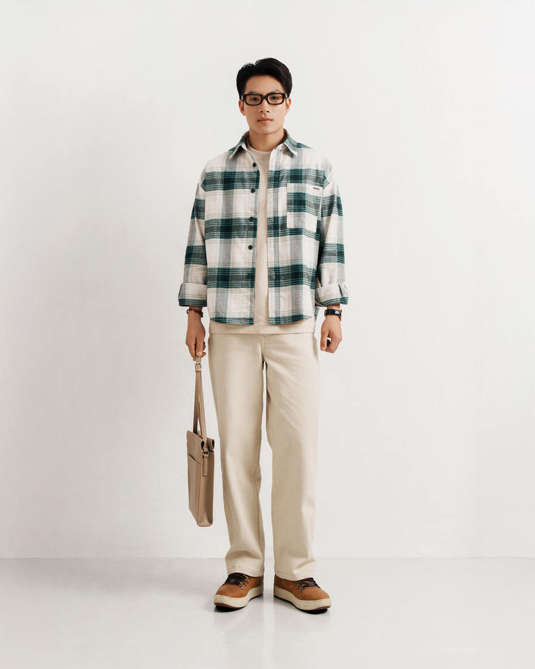 เสื้อเชิ้ตผ้าสักหลาดแขนยาวลำลองสำหรับผู้ชาย, ผ้าฝ้าย100% ระบายอากาศได้ดีฤดูใบไม้ร่วงแบบพรีเมี่ยมจากเวียดนาม