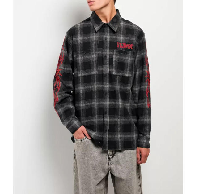 เสื้อเชิ้ตแขนยาวลายสก็อตผู้ชาย สไตล์ลำลอง ผ้าฝ้าย 100% กระดุมแถวเดียว ปักลายถักทอคุณภาพสูง